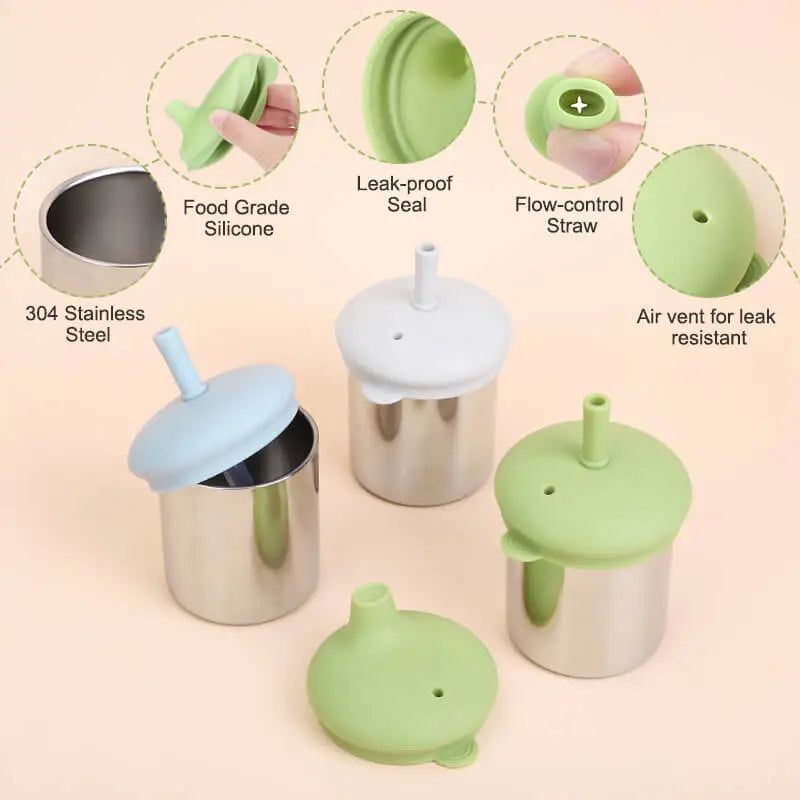 3.304 Stainless Steel.Food Grade Silicone. Leak-proof Seal. Flow-control Straw. Air vent for leak resistant.